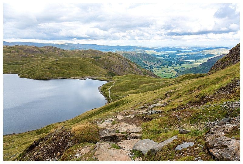 Upon reaching Stickle Tarn, you can choose to walk a path around it, or continue along a trail up to the Wainwright of Harrison Stickle. Even just walking a little further up this section gives you a stunning view over the tarn and across to Lake Windermere.